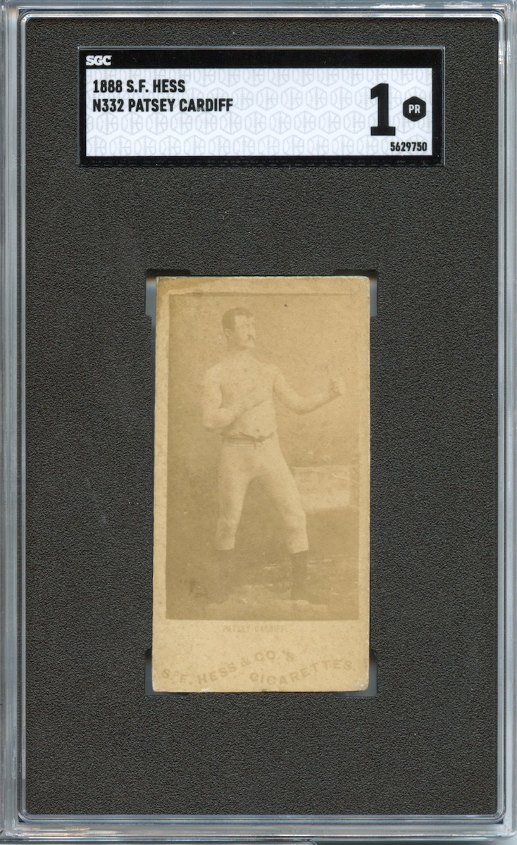 S.F. Hess was based in Rochester, NY, but did a lot (or all?) of its business on the West Coast, especially in California. They issued a few baseball-related sets, as well as several non-sport sets. The N332 set was an ambitious project with more than 100 athletes as subjects. What’s noticeable to me about these cards is that they appear to be photographs of photographs: often poor quality images, weird tilting, etc. The photos are definitely from the same source as the Old Judge and Gypsy Queen issues that Goodwin put out.